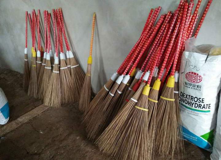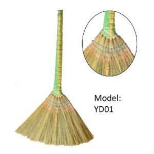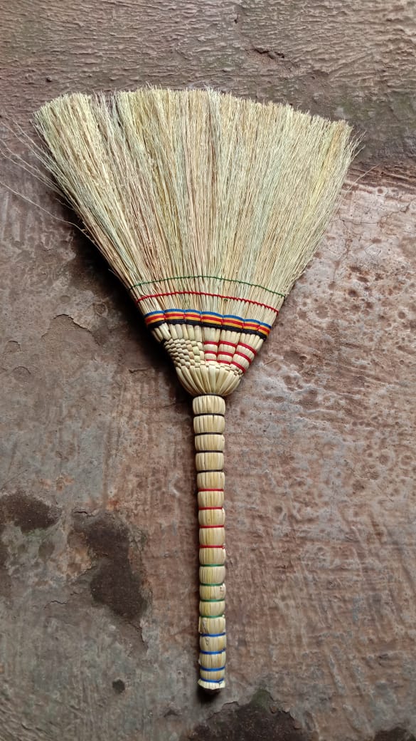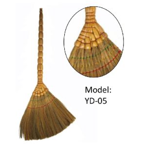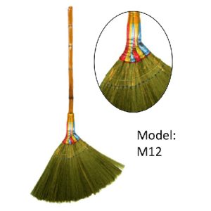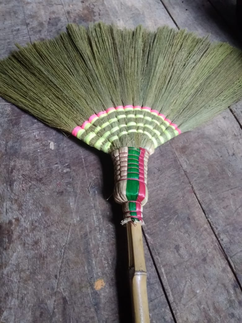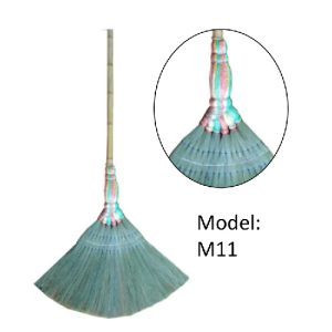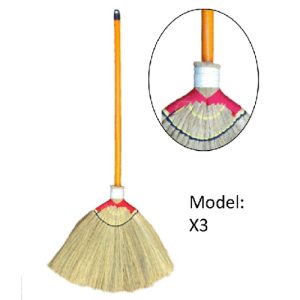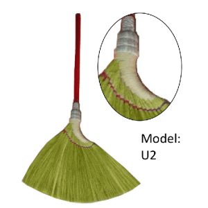 A natural broom made from sorghum fibers, durable and effective for sweeping dust and dirt off floors.